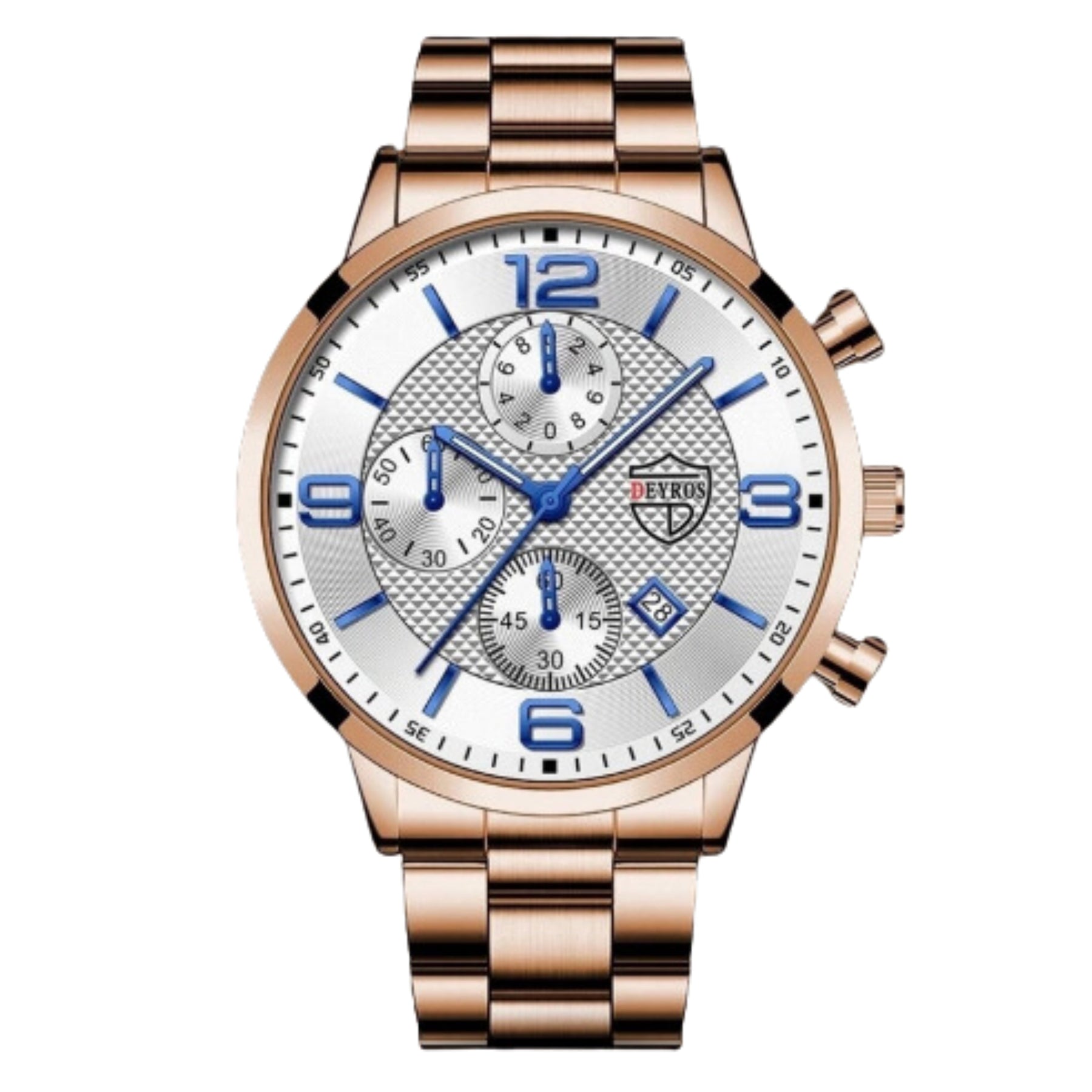 Tražite li sat koji spaja sofisticiranost s vrhunskom funkcionalnošću? Ova izvršna narukvica od nehrđajućeg čelika kombinira bezvremensku eleganciju s modernom preciznošću. S kućištem od visokokvalitetnog nehrđajućeg čelika i luksuznom kožnom narukvicom, savršen je dodatak za svakog modernog profesionalca.